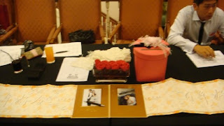 ALLISTER & JACELYN WEDDING (11 August' 09) ![]() Reach Jacelyn's place at 7.a.m plus, it was suppose to 7am. Girls.. i'm so sorry that i was late, they already started preparing for those game stuffs like half done. Went into her room, Siti was doing her hair-do halfway done and makeup done, my dear girl looked so demure and pretty with her bride gown. "I was wondering how will i look like when i get married.. haha, hoping i look as beautiful too.. muahaha" ![]() Some of her wedding Pictures... ![]() Having lotsa fun with Raye, Gina, Vernia, Baoling and Siti, and laughing at those "brothers" playing all those funny funny games; when they drank all those smelly and awful drinking with four different tastes, eating up all those oranges skin, one slices of oranges passing and sharing with all 7 brothers, finding those ribbons we tied throughout the entire block in every level and blar blar blar.. ![]() ![]() ![]() ![]() ![]() Although is real tiring but this is a kind of happy memorises in future when you think back. After all the tea serving ceremonies, i went back home to take a short nap and prepared myself, while the rest of the sisters followed Jacelyn straight to hotel. They found it troublesome going to and from home. So i be meeting them up at 5pm at the hotel. Their wedding was held at Bugis InterContinental hotel. ![]() ![]() Jacelyn. Candy. Baoling ![]() ![]() ![]() ![]() ![]() After my preparation, i went straight to hotel ballroom to help out baoling & jingyao to choose their first, second march in songs and the cake cutting songs. There are really many many small details to see about. While Jing yao and Baoling are reading their Mcee scripts. I went out to help out the girls to arrange those reception stuffs, it was a real busy night assisting guests to their seats... ![]() ![]() ![]() ![]() My babes~![]() ![]() ![]() ![]() And the chosen theme colour for the ballroom was Pink and Black, it was so pretty. Although some elderly and oldies people say no black for wedding!! Come on~ Why so old-fashioned? Not totally in black but is black with some bright colours, that can matches out well. Then why so many peoples are still wearing black for dinner lei, then ask them dun attend the dinner?? I think black is elegant and classy colour anyway.